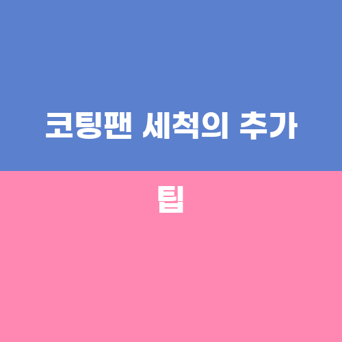 코팅팬을 세척할 때 몇 가지 추가 팁을 알면 더욱 효과적으로 세척할 수 있습니다. 예를 들어, 세척 후에는 반드시 행주로 털어서 물기를 제거한 후 건조시키는 것이 좋습니다. 또한 세척 후에는 코팅이 떨어지지 않도록 주의해야 하며, 사용 후에는 부드러운 솔로 세척해야 합니다. 이러한 추가 팁을 지키면 코팅팬을 오랫동안 사용할 수 있을 뿐만 아니라 안전하고 건강한 조리를 할 수 있습니다.