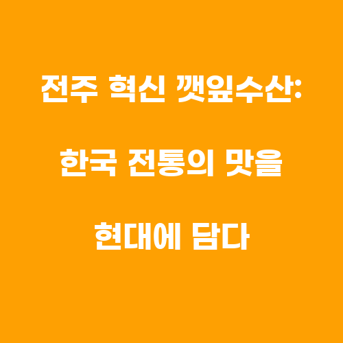 전주 혁신 깻잎수산은 전통적인 한식 재료인 깻잎을 현대적으로 재해석한 혁신적인 음식점으로, 전라도 지역의 특산물인 깻잎을 주 재료로 사용하여 다채로운 메뉴를 선보이고 있습니다. 깻잎의 고소한 향과 맛을 최대한 살리기 위해 노력하며, 신선한 재료와 정성가득한 손길로 손님들에게 최상의 맛과 서비스를 제공하고 있습니다.