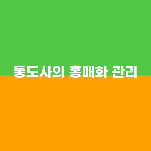 통도사의 홍매화는 사찰 관리 단체에 의해 주기적으로 관리되고 있습니다. 홍매화가 피는 계절에는 특히 주변 환경을 쾌적하게 유지하기 위해 노력하고 있으며, 방문객들이 홍매화를 안전하게 감상할 수 있도록 안내와 안전관리에 힘쓰고 있습니다.