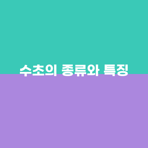 수초에는 다양한 종류가 있으며, 각각의 종류마다 특징과 키우는 방법이 다릅니다. 대표적인 수초 종류로는 하이그로피라, 바리스네리아, 엘로데아 등이 있습니다.