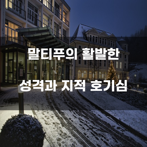 말티푸는 지적 호기심이 많은 성격을 가지고 있어, 쉽게 지루해하지 않고 항상 새로운 것을 배우려고 합니다. 이들은 주인과의 상호 작용을 통해 지적 자극을 받고, 주인과의 놀이를 통해 즐거움을 느끼며 시간을 보냅니다. 또한 말티푸는 쾌활하고 밝은 성격을 가지고 있어, 주변 사람들에게 활력을 불어넣어줍니다.