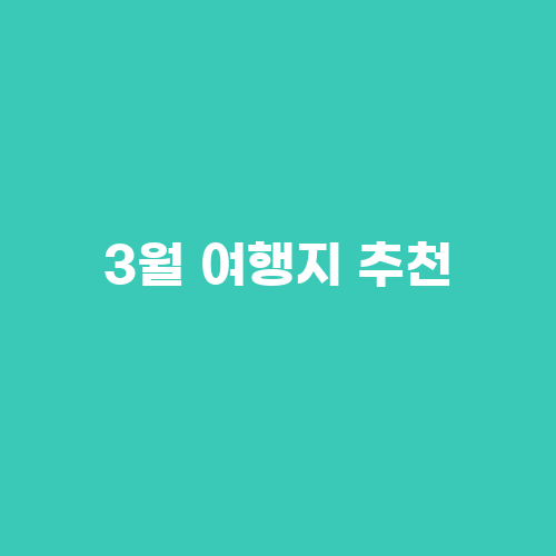 3월에 여행을 계획 중이라면, 봄을 느낄 수 있는 제주도, 역사와 문화를 느낄 수 있는 경주, 그리고 자연 속에서 힐링을 느낄 수 있는 강원도를 고려해보세요. 이른 봄의 시작을 느낄 수 있는 제주도에서는 아름다운 유채꽃밭을 감상하고, 푸른 바다를 바라보며 해변가를 산책하는 것도 좋은 방법입니다. 역사와 전통을 느낄 수 있는 경주에서는 석굴암과 불국사를 방문하여 한국의 역사와 문화를 체험할 수 있습니다. 또한, 강원도에서는 아름다운 자연 풍경을 감상하며 일출을 보는 것도 잊지 말아야 합니다.