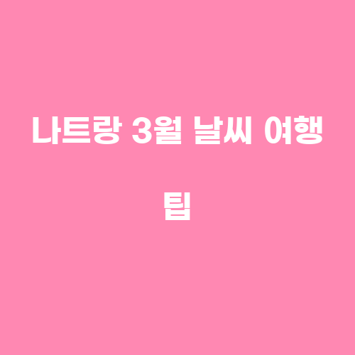 나트랑은 3월에 방문하기에 적합한 지역으로, 쾌적한 날씨와 다양한 관광 명소를 즐길 수 있는 곳입니다. 따뜻한 햇살을 맞으며 해변을 즐기거나 현지 문화를 체험하며 즐거운 여행을 즐길 수 있습니다. 다만, 가볍게 소나기가 내릴 수 있으므로 우산이나 방수 옷을 챙겨두는 것이 좋습니다. 즐거운 여행이 되시길 바라며, 나트랑에서의 특별한 추억을 만들어보세요!