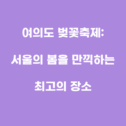 여의도 벚꽃축제는 매년 4월에 서울 여의도 한강공원에서 열리는 대한민국에서 가장 아름다운 벚꽃 축제 중 하나입니다. 이 축제는 한국의 봄을 대표하는 행사로서 많은 관광객들과 국내외 여행객들에게 큰 인기를 끌고 있습니다. 벚꽃축제는 한국의 전통적인 문화와 아름다운 자연경관을 함께 즐길 수 있는 특별한 기회를 제공합니다.