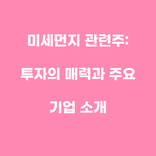 미세먼지 관련주는 미세먼지 발생으로 인해 수요가 높아지는 기업들을 가리킵니다. 미세먼지는 대기 중에 떠다니는 먼지와 다양한 유해 물질로 인해 인체에 해로운 영향을 미치는데, 이로 인해 미세먼지 발생을 줄이거나 대비하는 기술 및 제품에 대한 수요가 증가하고 있습니다. 이에 미세먼지 관련주는 미세먼지 문제를 해결하거나 완화하는 기술을 보유한 기업들을 말하며, 이들 기업은 미세먼지 관련 사업을 통해 안정적인 수익을 올리는 투자 대상으로 각광받고 있습니다.