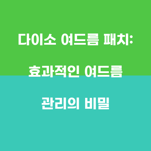 다이소 여드름 패치는 여드름을 집중적으로 치료하는 데 효과적입니다. 이 제품은 여드름이 있는 부위에 부착되어 있을 때 여드름을 흡수하고 치료하는 데 도움을 줍니다. 또한, 다이소 여드름 패치는 피부 자극을 최소화하고 여드름을 치료하는 데 도움을 줍니다. 따라서, 이 제품을 사용하면 여드름을 더욱 효과적으로 관리할 수 있을 것입니다.