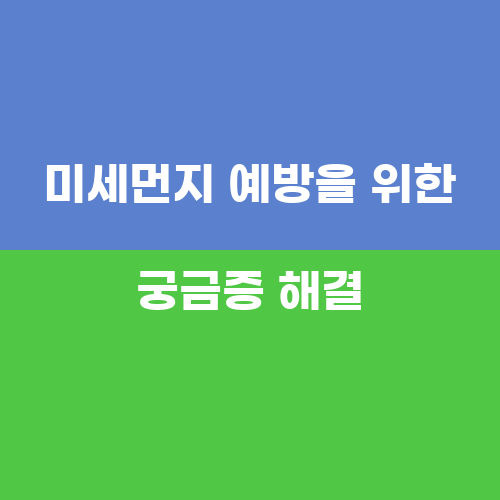 미세먼지 예방을 위해 궁금증을 해결해보겠습니다. 먼저, 미세먼지가 실내에 유입되는 것을 막기 위해 창문을 닫고 공기청정기를 사용하는 것이 좋습니다. 또한, 실외 활동 시에는 마스크를 착용하고 눈을 보호하기 위해 안경을 착용하는 것이 좋습니다. 미세먼지가 실외 활동에 영향을 미치는 경우, 실내 운동이나 실내 활동을 통해 건강을 유지하는 것이 좋습니다.