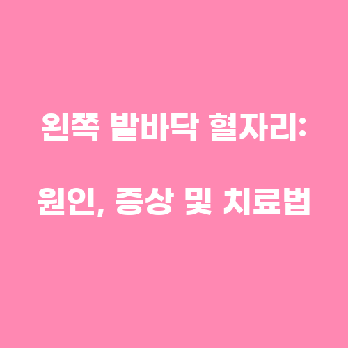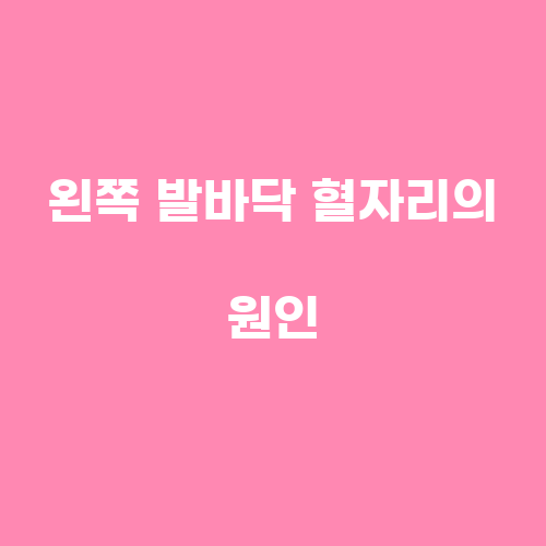 왼쪽 발바닥 혈자리가 발생하는 주된 원인은 다양합니다. 먼저, 왼쪽 발바닥에 강한 충격이 가해지면 혈관이 파열되어 혈자리가 생길 수 있습니다. 또한, 오랜 시간 서있거나 걷는 등의 활동으로 인해 발바닥에 압력이 가해지면 혈액순환이 저하되어 혈자리가 발생할 수도 있습니다. 또한, 혈관 질환으로 인해 혈액순환이 원활하지 않을 경우에도 혈자리가 생길 수 있습니다.