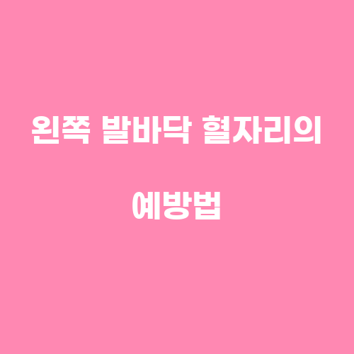 왼쪽 발바닥 혈자리를 예방하기 위해서는 몇 가지 주의사항을 준수하는 것이 중요합니다. 먼저, 신발을 편안하게 신고 걷는 것이 중요합니다. 너무 좁거나 높은 하이힐을 신지 않도록 주의해야 합니다. 또한, 오랜 시간 서있는 활동을 피하고, 가능하면 발을 쉬게 하도록 하는 것이 좋습니다. 또한, 발바닥 마사지를 통해 혈액순환이 개선되도록 하는 것도 좋은 방법입니다.