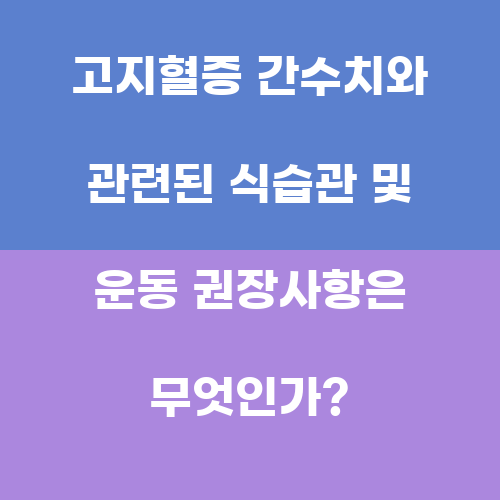고지혈증 간수치와 관련된 식습관 및 운동 권장사항은 무엇인가?