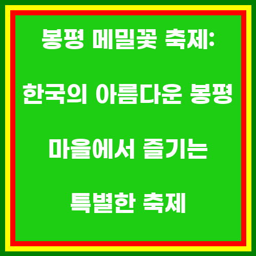 봉평 메밀꽃 축제는 한국의 전통과 자연을 경험할 수 있는 특별한 축제로, 방문객들에게 즐거움과 휴식을 동시에 제공합니다. 메밀꽃이 만개하는 가을철, 봉평의 아름다운 풍경을 감상하며 지역 음식과 문화를 체험할 수 있는 이 축제는 한국을 방문하는 관광객들에게 추천할 만한 특별한 행사입니다. 봉평 메밀꽃 축제를 경험하면서 한국의 아름다운 자연과 문화를 만끽해보세요.