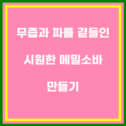 무즙과 파를 곁들인 시원한 메밀소바는 여름철에 먹기 딱 좋은 요리입니다. 상큼하고 깔끔한 맛이 어우러진 이 요리는 무더위를 싹~ 쾌적하게 날려줍니다. 소바를 직접 만들어보면 더욱 신선하고 건강한 맛을 느낄 수 있으니, 지금 바로 도전해보세요. 소바 국물에 무즙과 파를 넣어 더욱 특별한 맛을 낼 수 있으니, 가족들과 함께 즐기는 소바 타임을 만들어보세요. 신선한 재료와 정성이 가득한 소바는 여름철 식욕을 돋우며 건강한 식사를 할 수 있도록 도와줄 것입니다. 함께 즐기는 여름 소바 요리로 즐거운 시간을 보내세요!