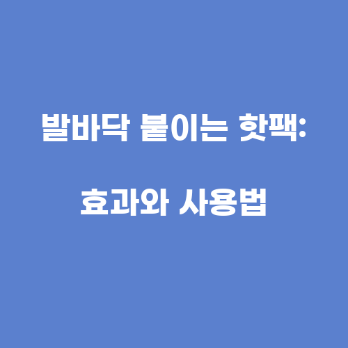 발바닥 붙이는 핫팩의 효과