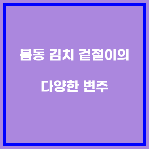 - 보관: 봄동 김치 겉절이는 냉장고에 보관해 두면 오랫동안 맛있게 먹을 수 있습니다.