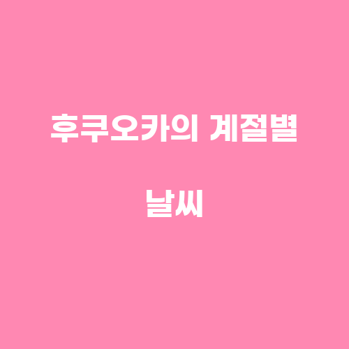 후쿠오카는 일본의 다른 지역과 마찬가지로 계절마다 다양한 날씨를 경험할 수 있습니다. 봄에는 기온이 올라가고 꽃들이 만발하여 아름다운 풍경을 즐길 수 있습니다. 여름에는 무더운 날씨와 습도가 높은 날들이 많아져서 더위를 피하기 위한 대책이 필요합니다. 가을에는 시원한 바람이 불면서 산책하기 좋은 날씨가 많습니다. 겨울에는 추운 날씨와 간혹 눈이 내릴 수 있으므로 따뜻한 옷을 챙기는 것이 좋습니다.